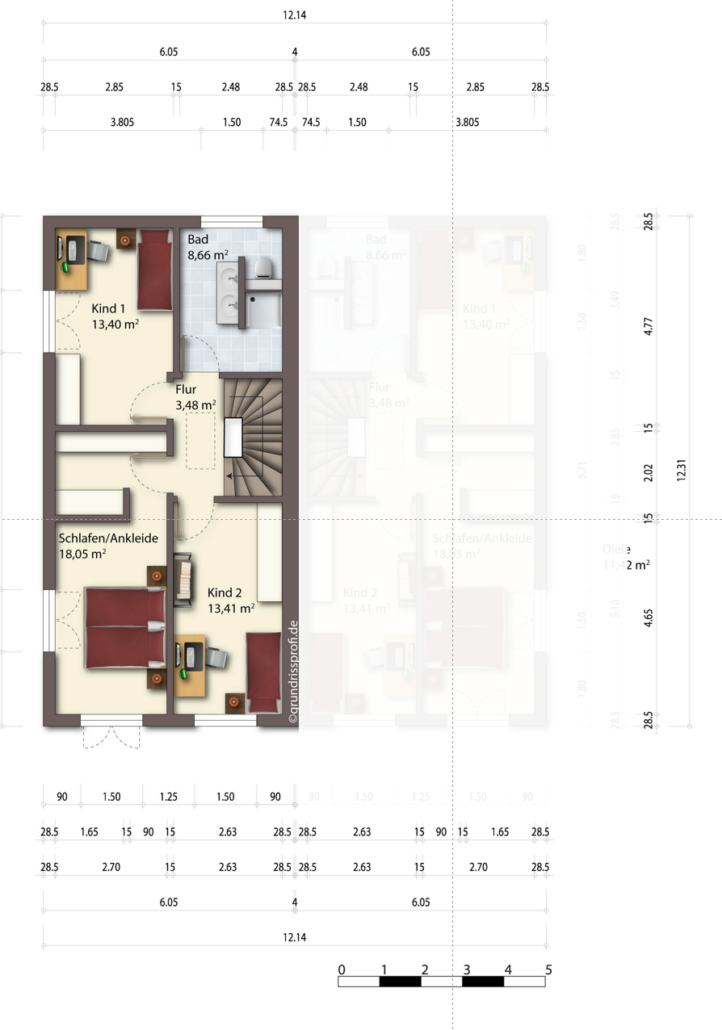 – kein Keller (dafür zusätzlichen Stauraum im großen Dachboden, der sich über die gesamte Doppelhaushälfte erstreckt)